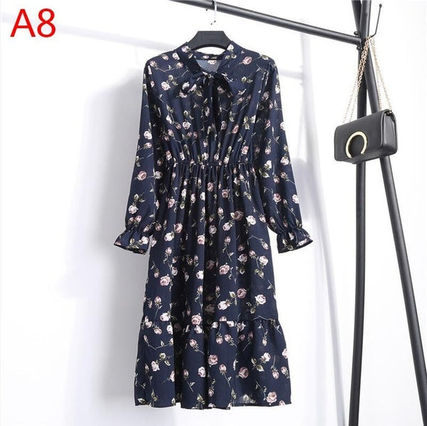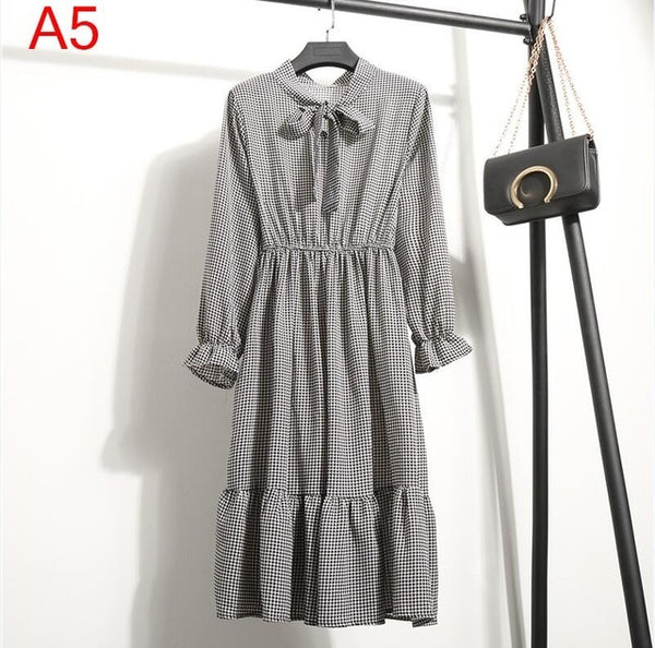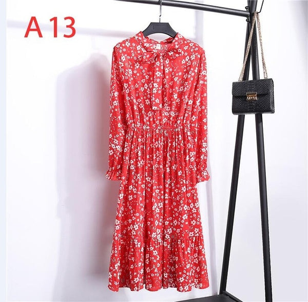 Material: PolyesterMaterial: CottonSilhouette: A-LineSeason: AutumnNeckline: StandSleeve Length(cm): FullSleeve Style: Butterfly SleeveDecoration: BowStyle: CasualWaistline: empirePattern Type: PrintDresses Length: Knee-Length